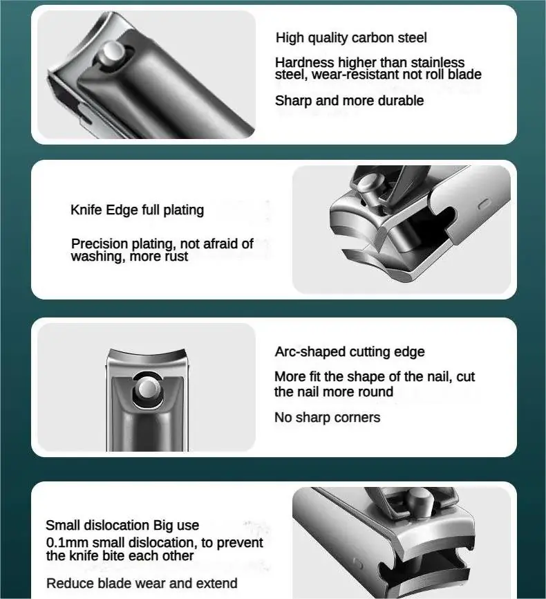 1. This is a nail clipper with anti-splash function, which can effectively prevent nail shavings splash, facilitate cleaning and storage, and prevent eye injury.