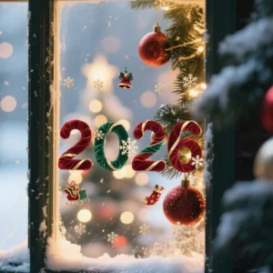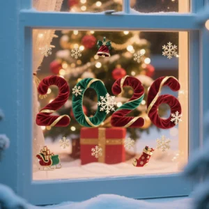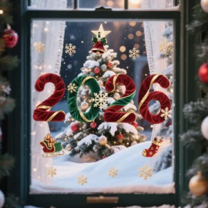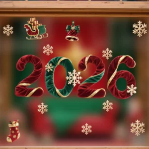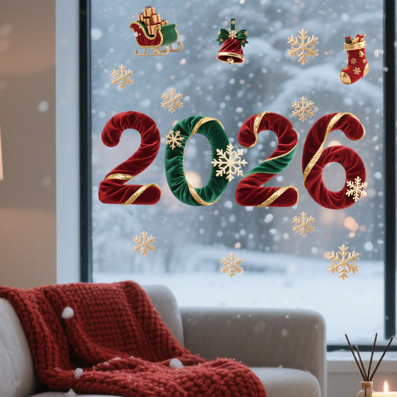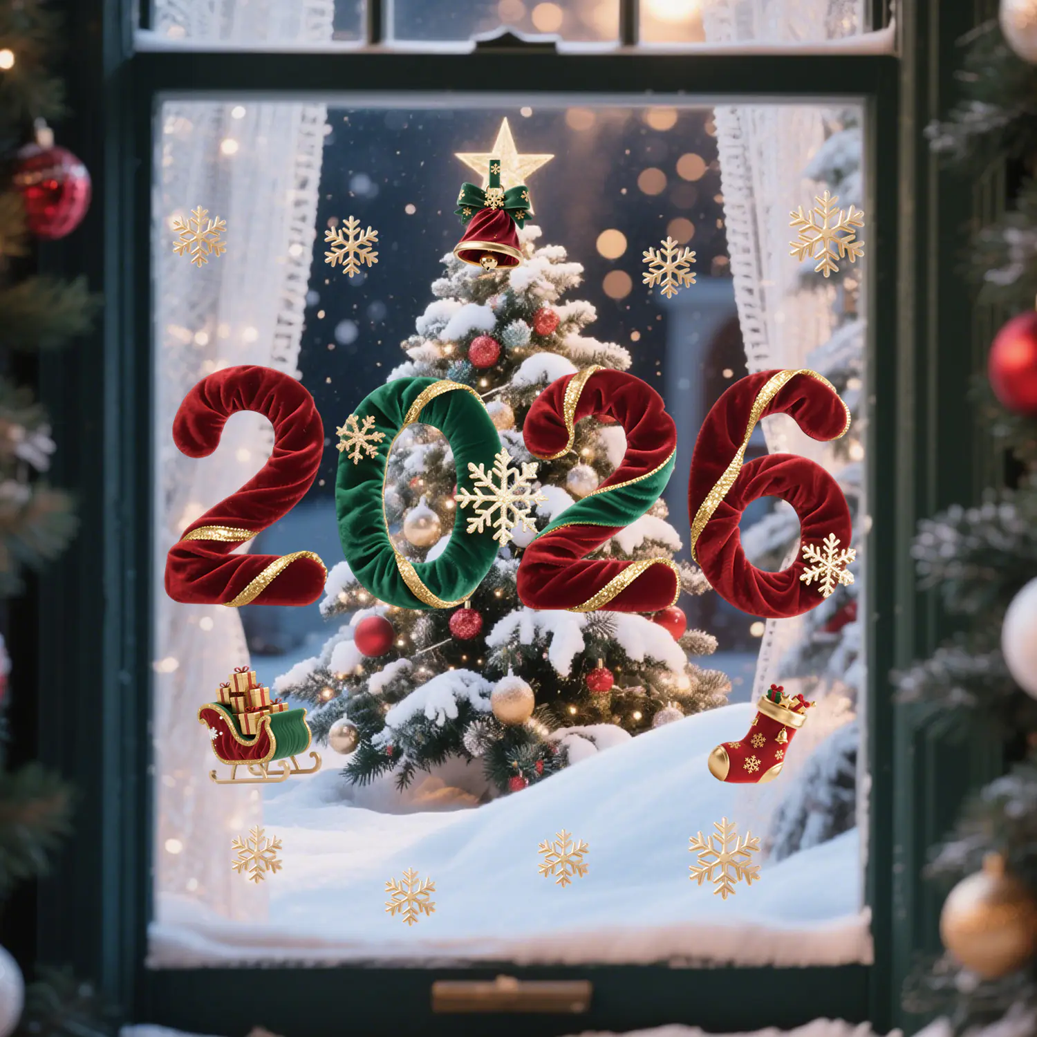 2026 New Silk Material Static Cling Decal, Removable PVC Sticker for Christmas Atmosphere Decor in Shopping Malls