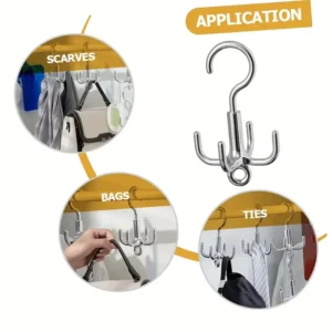 Package includes: a silver multifunctional rotary clothing hookMultifunctional rotating clothes hooks usually have the following