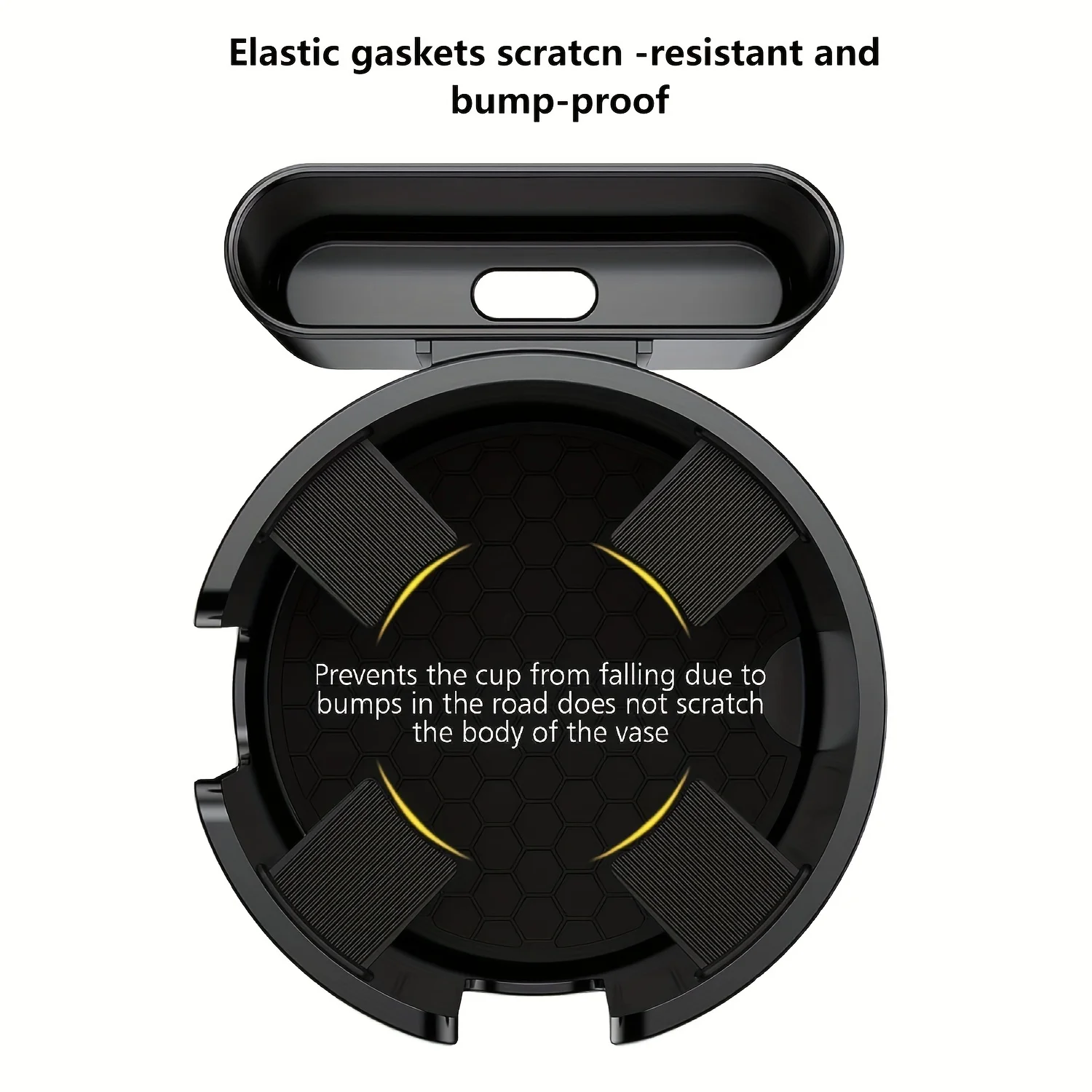 2,Non-slip and Firm Fixation: The Automotive Cup Holder has 4 elastic silicone sheets, and is able to hold most sizes of cups/bottles, making the cups not shake when driving on bumpy roads.