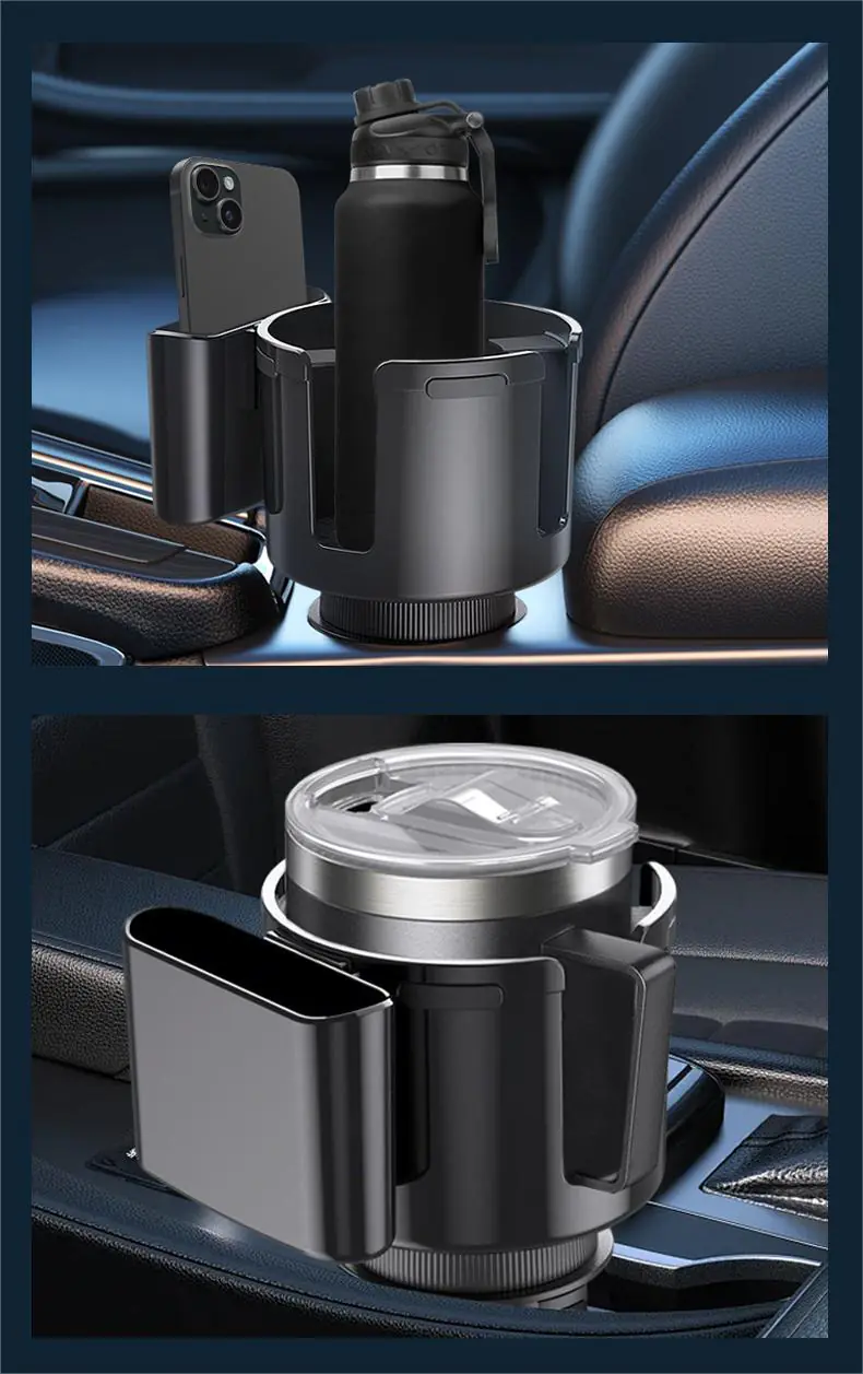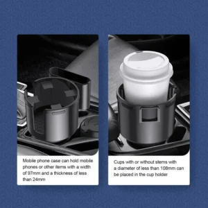 1,2-in-1 Practical Design: The Car Cup Holder Expander utilizes a 2-in-1 design, making it possible for you to place a mobile phone and a cup/cup with a handle at the same time.