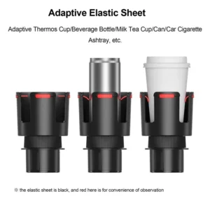 4,Wide Application: The Cup Holder Expander for Car can adapt to thermos cups, beverage bottles, milk tea cups, coffee cups, p op cans, car ashtrays, etc.