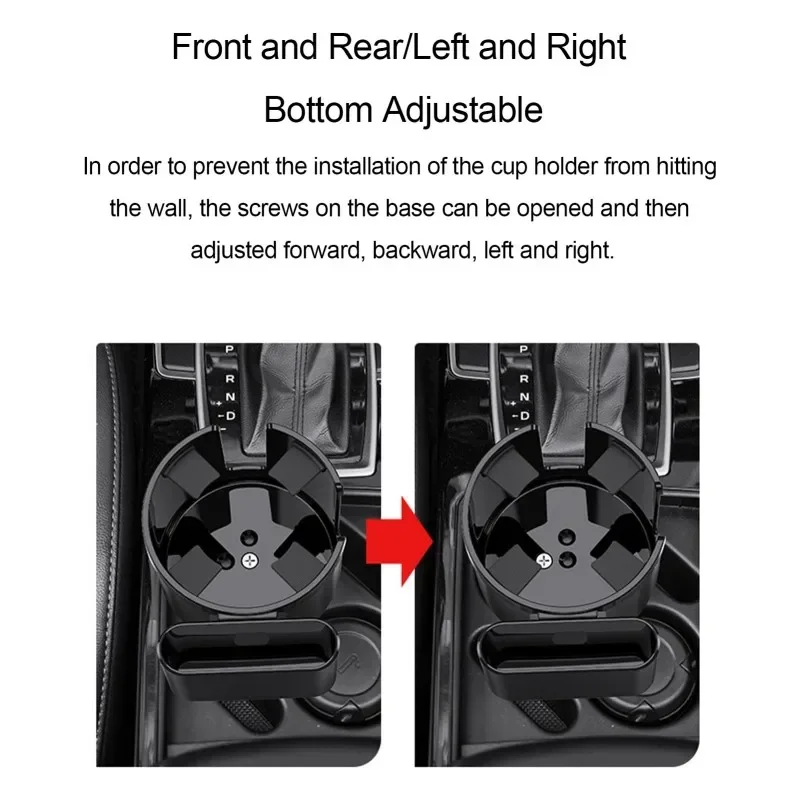3. If the original position of the cup holder is not suitable for installation, you can unscrew the screw in the cup holder, then adjust the screw hole position of the cup holder to the front, back or left and right, and then screw on the screw.