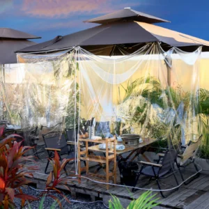 Being outdoors and experiencing nature up close is a real passion! Using our transparent tarpaulin will not block your view. Whether it rains, snows or other bad weather, you can enjoy leisure time under its protection, because it is tear-resistant, waterproof, very durable, and not only suitable for outdoor camping in the garden patio gazebo, it can also be used to build vegetable, greenhouses, chicken, dog houses , protecting plants, etc.