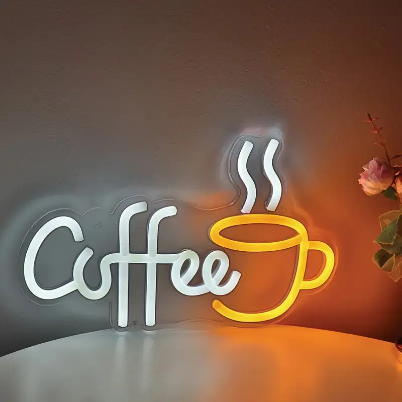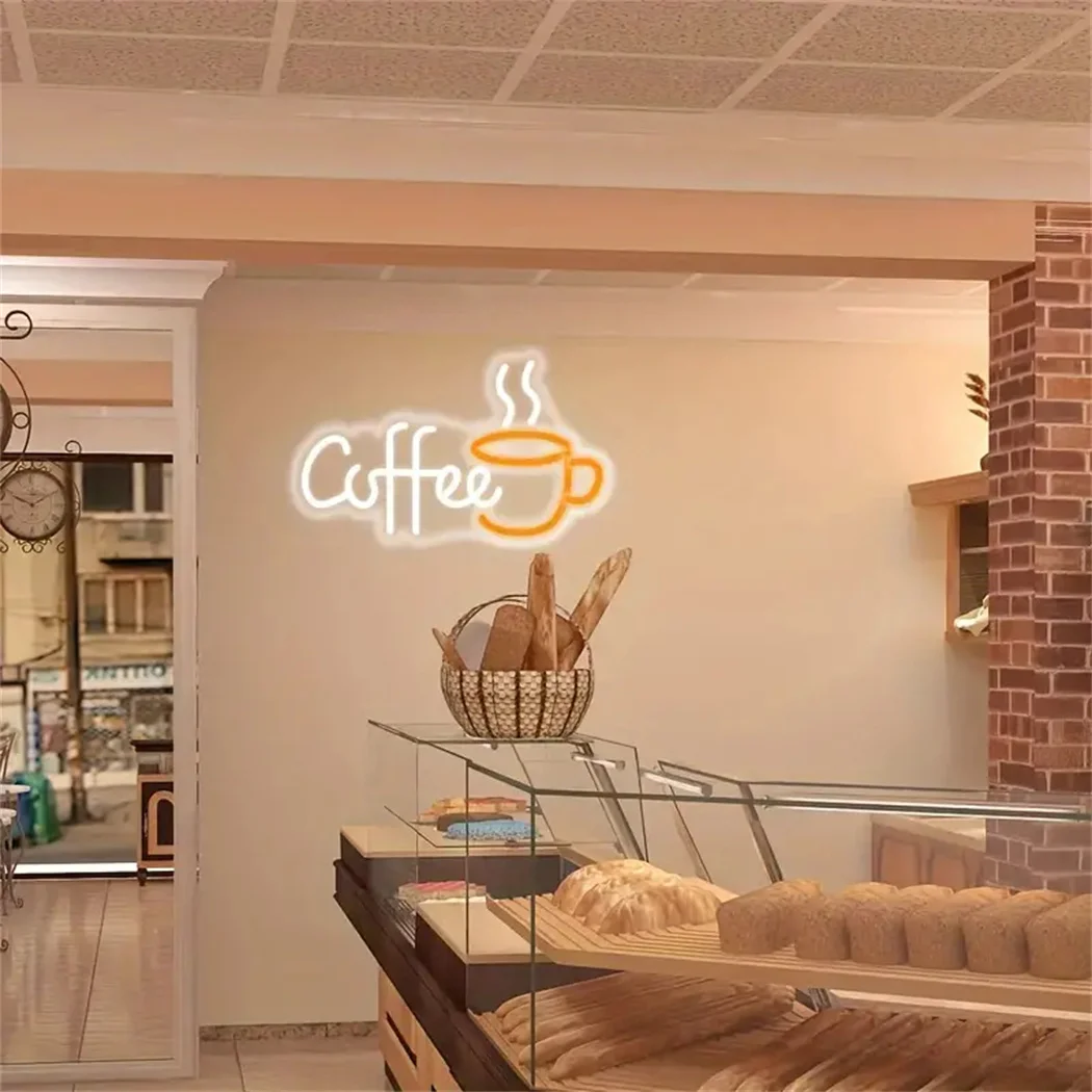 Coffee With Cup LED Neon Art Sign Light For Party Room Pub Club Milk Tea Coffee Shop Wall Decoration Gifts Business Neon Signs
