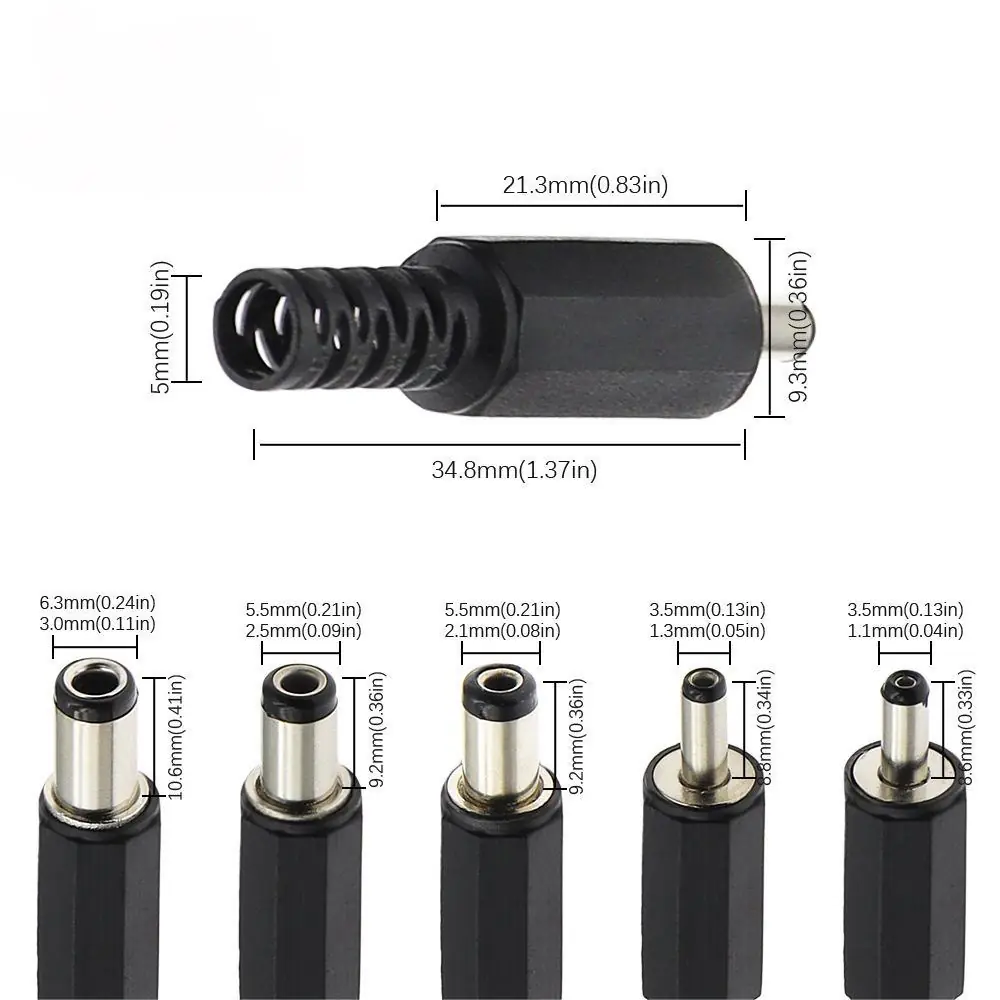 DC Power Plug and Socket 3.5-1.1/1.3 5.5-2.1/2.5MM - Solder Type Connector Kit (Male & Female) for DIY Power CablesDC Power Plug and Socket 3.5-1.1/1.3 5.5-2.1/2.5MM – Solder Type Connector Kit (Male & Female) for DIY Power Cables