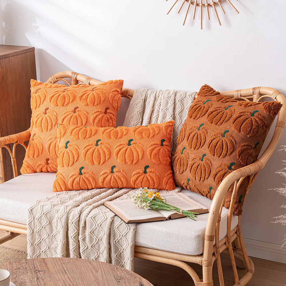 Fall Throw Pillow Covers Decorative Maple Leaf Plush Pillow Cases for Home Bedroom Living Room