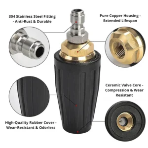 Durable & Long-Lasting: Unlike common aluminum nozzles prone to corrosion, our 100% copper body withstands extreme pressure (4000 PSI) and resrusting, ensuring years of reliable performance.