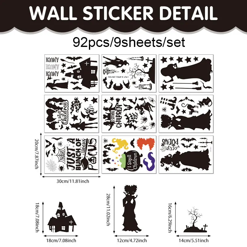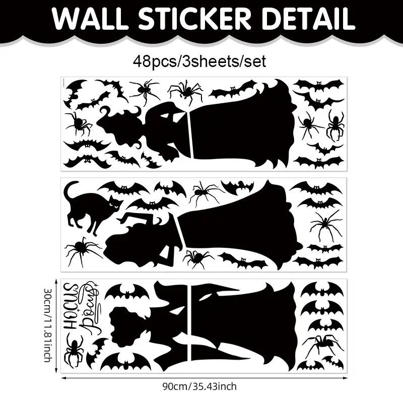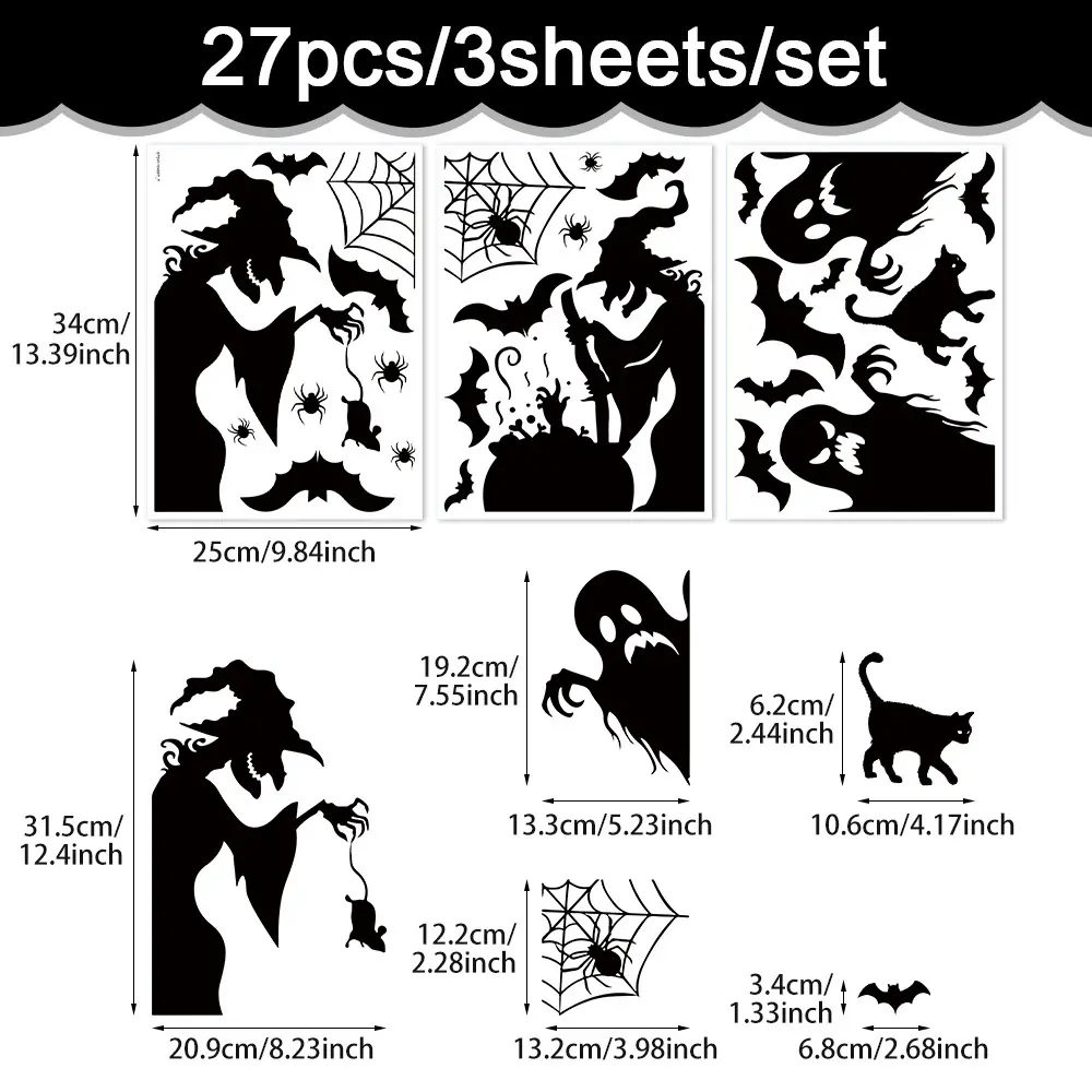 New Halloween Decorations Ghost Shadow DIY Window Stickers Witch Bat Skeleton Halloween Party Window Stickers Wall Stickers