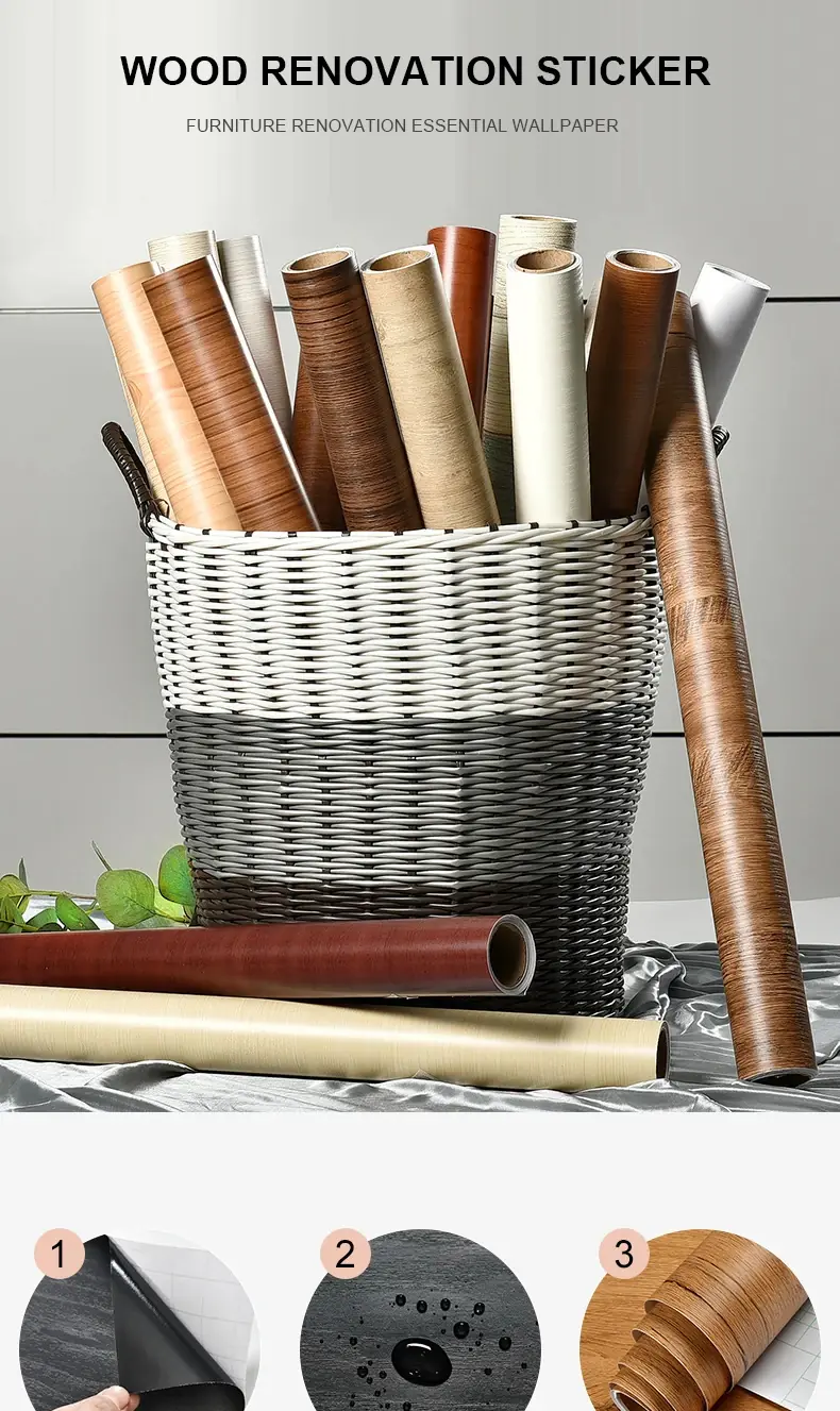 PVC Waterproof Self Adhesive Wallpaper Wall in Rolls Furniture Cabinets Vinyl Decorative Film Wood Grain Stickers For Home DecorPVC Waterproof Self Adhesive Wallpaper Wall in Rolls Furniture Cabinets Vinyl Decorative Film Wood Grain Stickers For Home Decor