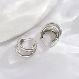 Stainless Steel Smooth Metal Chunky Hoop Earrings for Women Fashion Round Circle Hoops Statement Earrings Trendy Jewelry