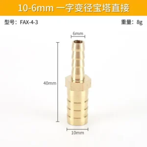 Straight-Through Barbed Fitting – Brass Push-to-Connect Adapter for Φ6/8/10mm Tubing (Reducing Coupler, Male Connector, Pneumatic Quick Connect)