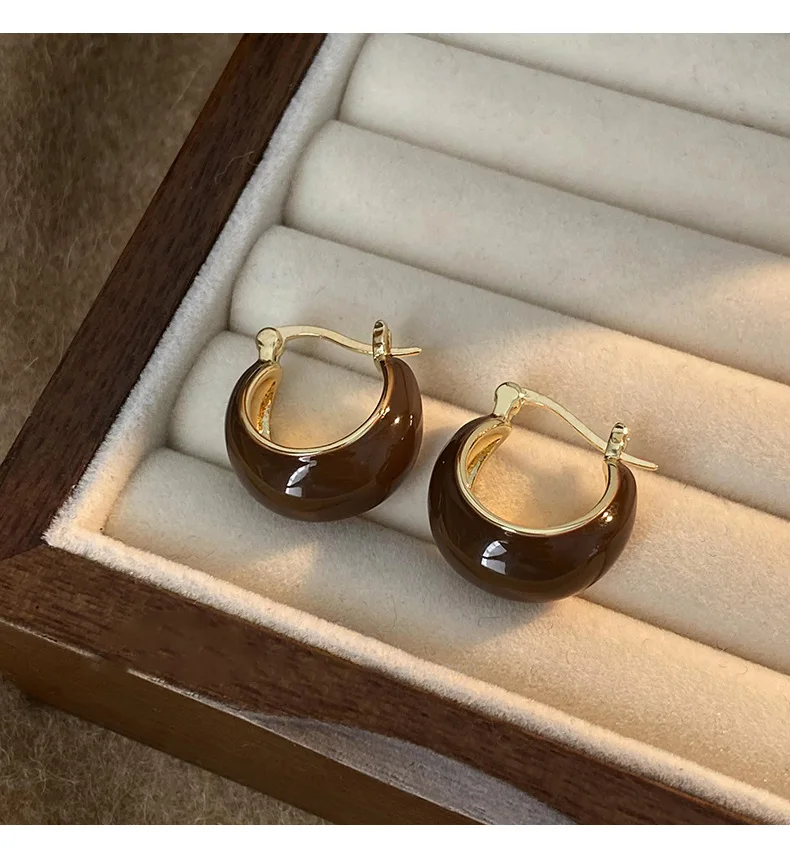 Vintage Dripping Oil U-shaped Earring for Women Simple Hoop Earrings Temperament Personality All-matching Jewelry Female 2025Vintage Dripping Oil U-shaped Earring for Women Simple Hoop Earrings Temperament Personality All-matching Jewelry Female 2025