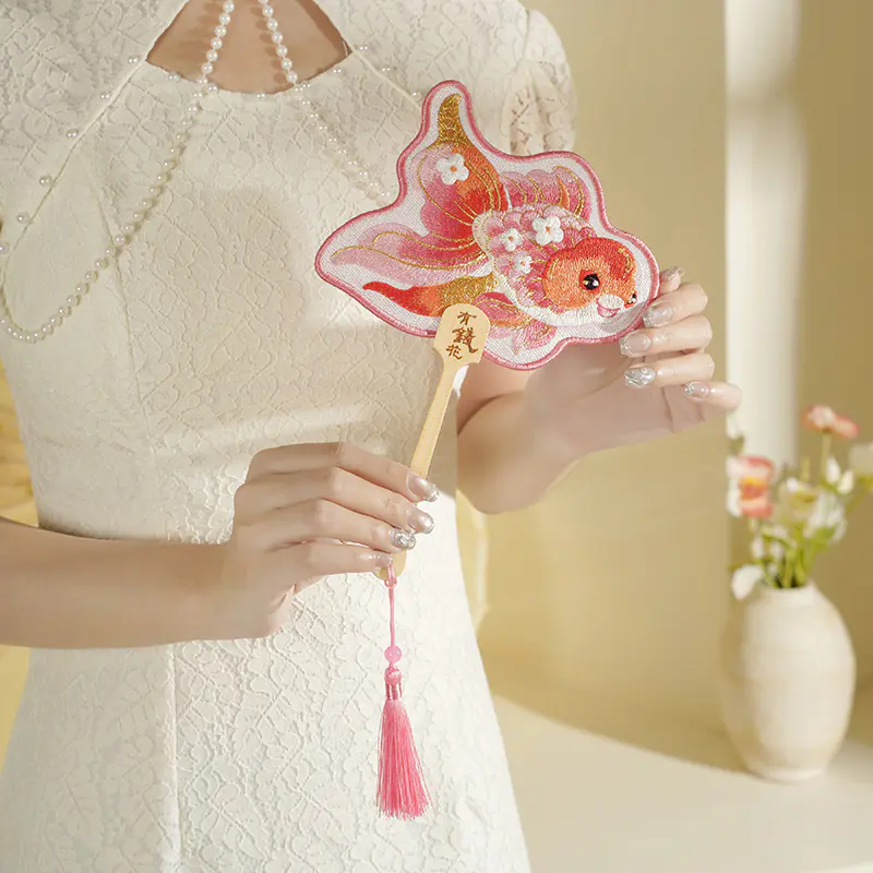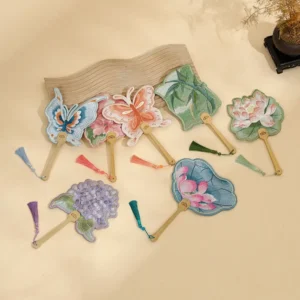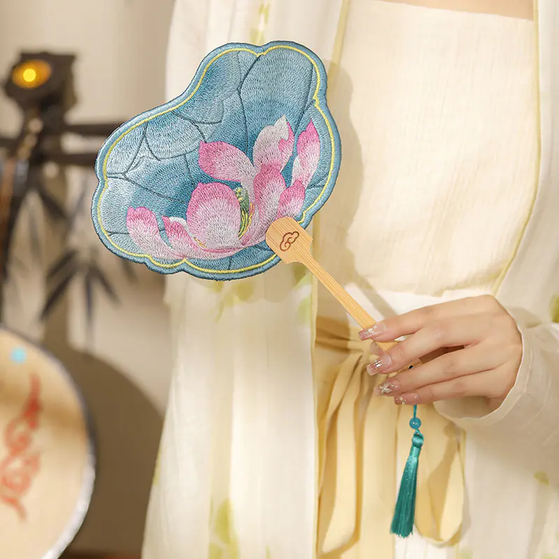 Vintage Handheld Embroidered Round Fan Tassels Floral Shaped Chinese Style Fan Butterfly Lotus Group Fan Photography PropVintage Handheld Embroidered Round Fan Tassels Floral Shaped Chinese Style Fan Butterfly Lotus Group Fan Photography Prop