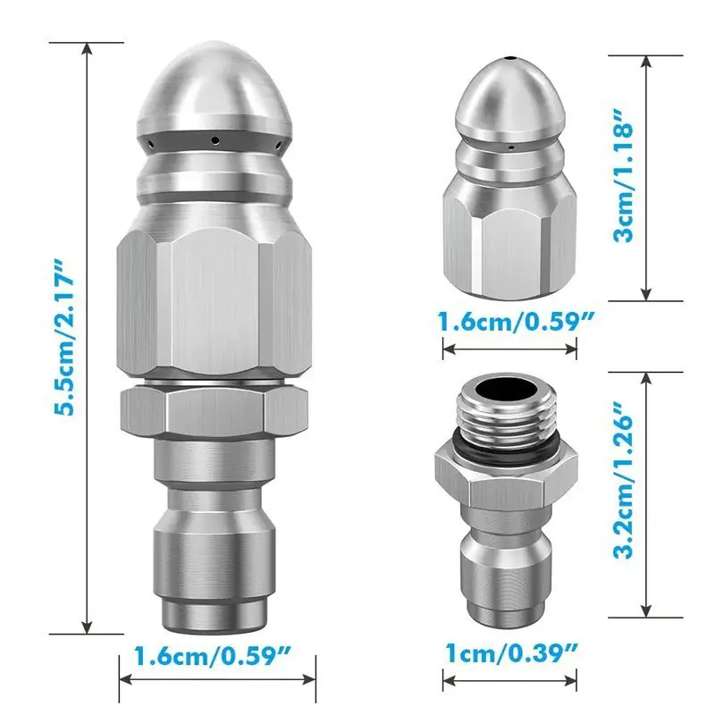 Water Jet High Pressure Sprayer Nozzle Clean Sewer 1/4" Stainless Steel Pressure Washer Quick Plug Drain Hose Nozzle ToolWater Jet High Pressure Sprayer Nozzle Clean Sewer 1/4″ Stainless Steel Pressure Washer Quick Plug Drain Hose Nozzle Tool